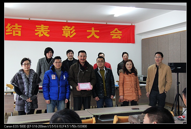 第五项:傅志宝宣读“关于2012年度公司优秀员工评选结果的通知”并颁奖。设计一所宗超群、黄海强;设计二所郑瑶、吴昊勇;方案所叶蓉花;后勤管理孙雄娟;双维公司赵闺贞分别当选;