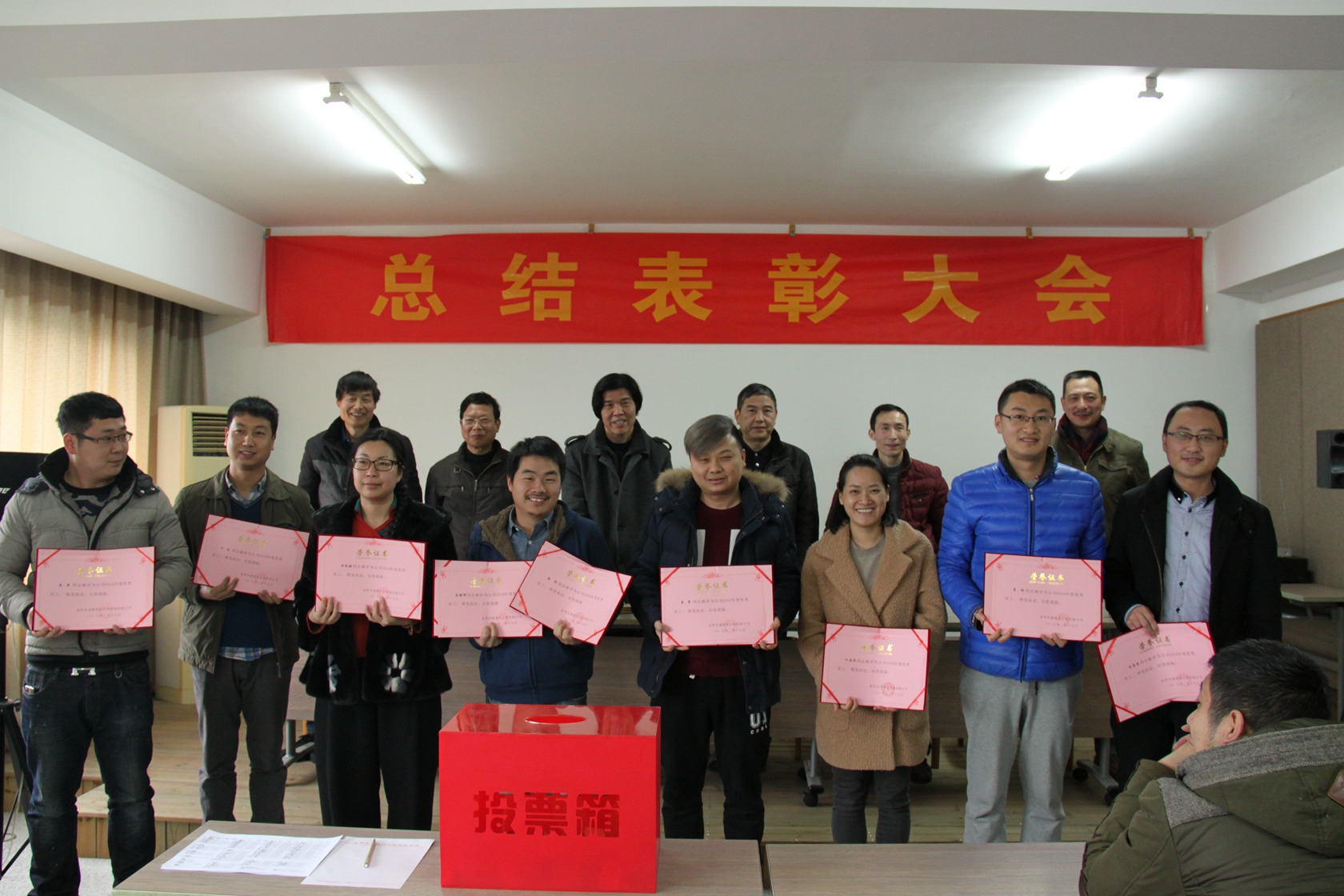 2016年度公司总结表彰大会在新春抽奖活动喜气洋溢的气氛下落下了帷幕。大家的脸上透露着憧憬和向往。在新的一年里,公司在董事会和经营班子的领导下,在广大技术骨干的关心支持下和全体员工的共同努力下一定能够取得更好的成绩,更上一层楼!